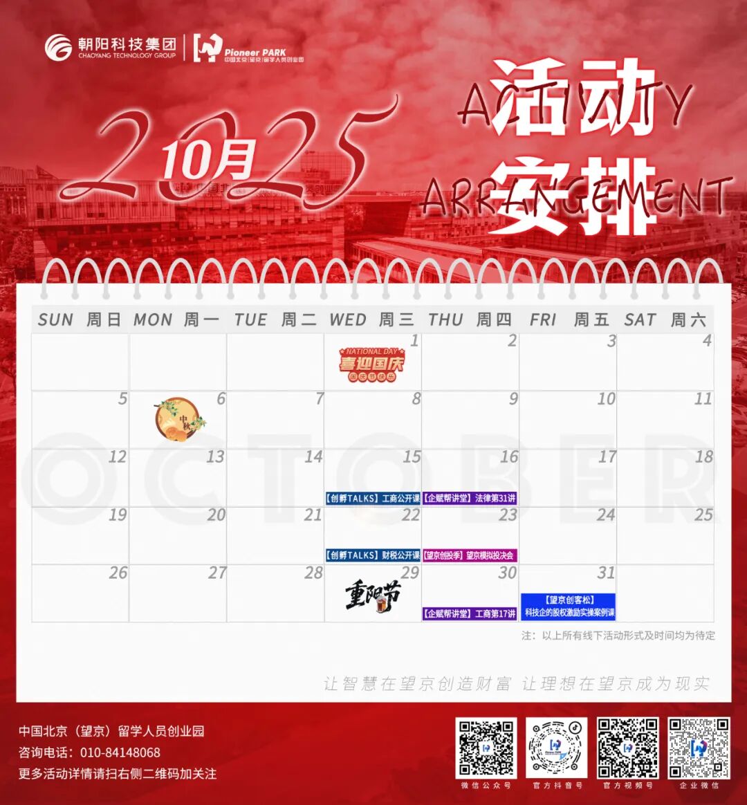 望京留创园10月活动日历