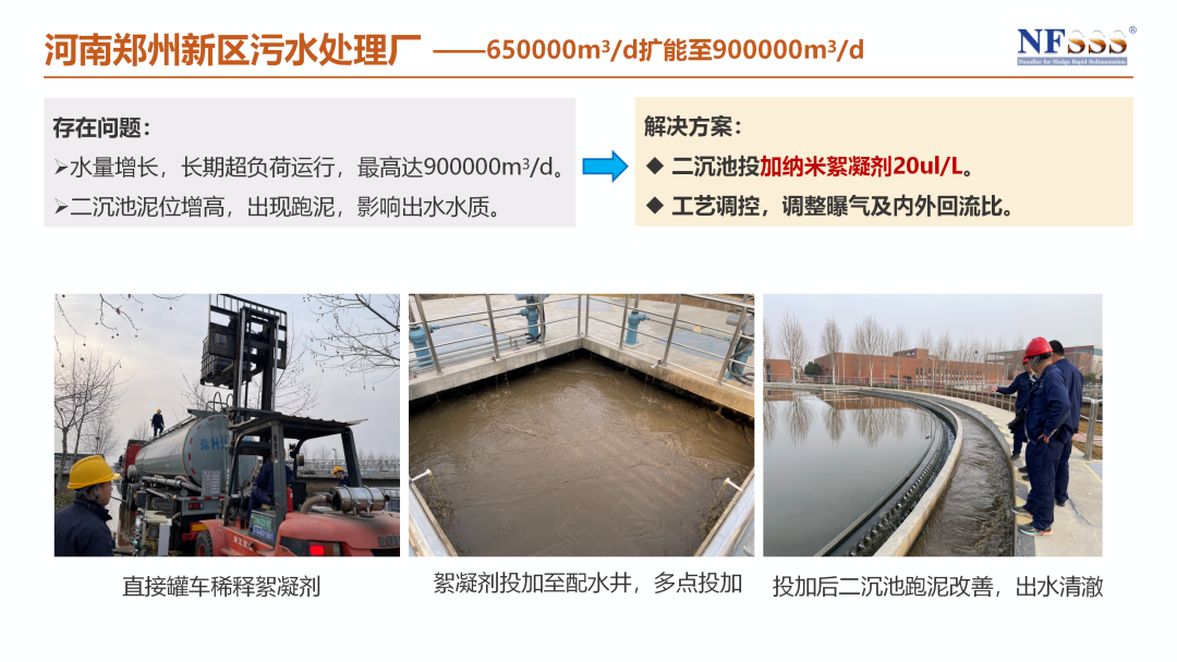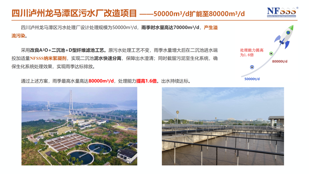 本次获奖项目提出了一套不新建、不停产、低成本、高效率的“原位扩能”技术路径,核心在于创新性地应用了NFSSS纳米絮凝剂。