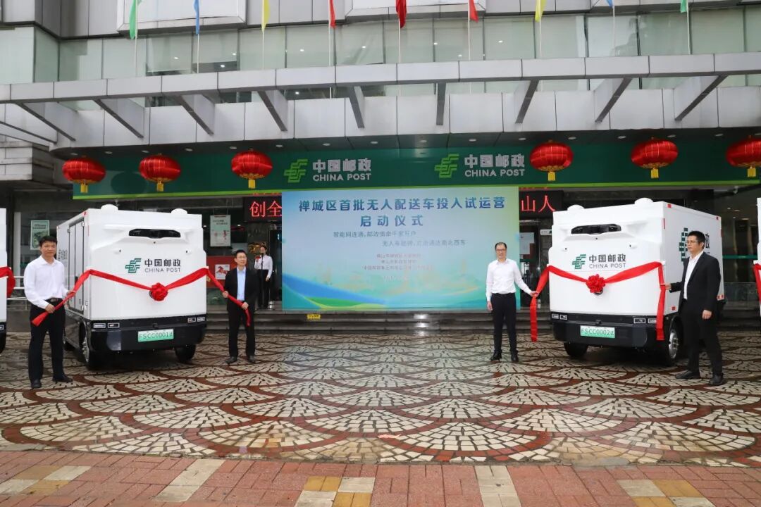 2月28日(农历正月十二)下午,禅城区首批邮政无人配送车投入试运营启动仪式在佛山市邮政分公司汾江南营业厅门前隆重举行。中共佛山市禅城区委常委黄吉亮,佛山市邮政管理局党组书记、局长刘颂鹏,中国邮政集团有限公司佛山市分公司党委书记、总经理陈必虎,禅城区交通运输局党组书记、局长肖映泽等领导出席仪式,共同见证禅城智慧邮政建设迈入新阶段。